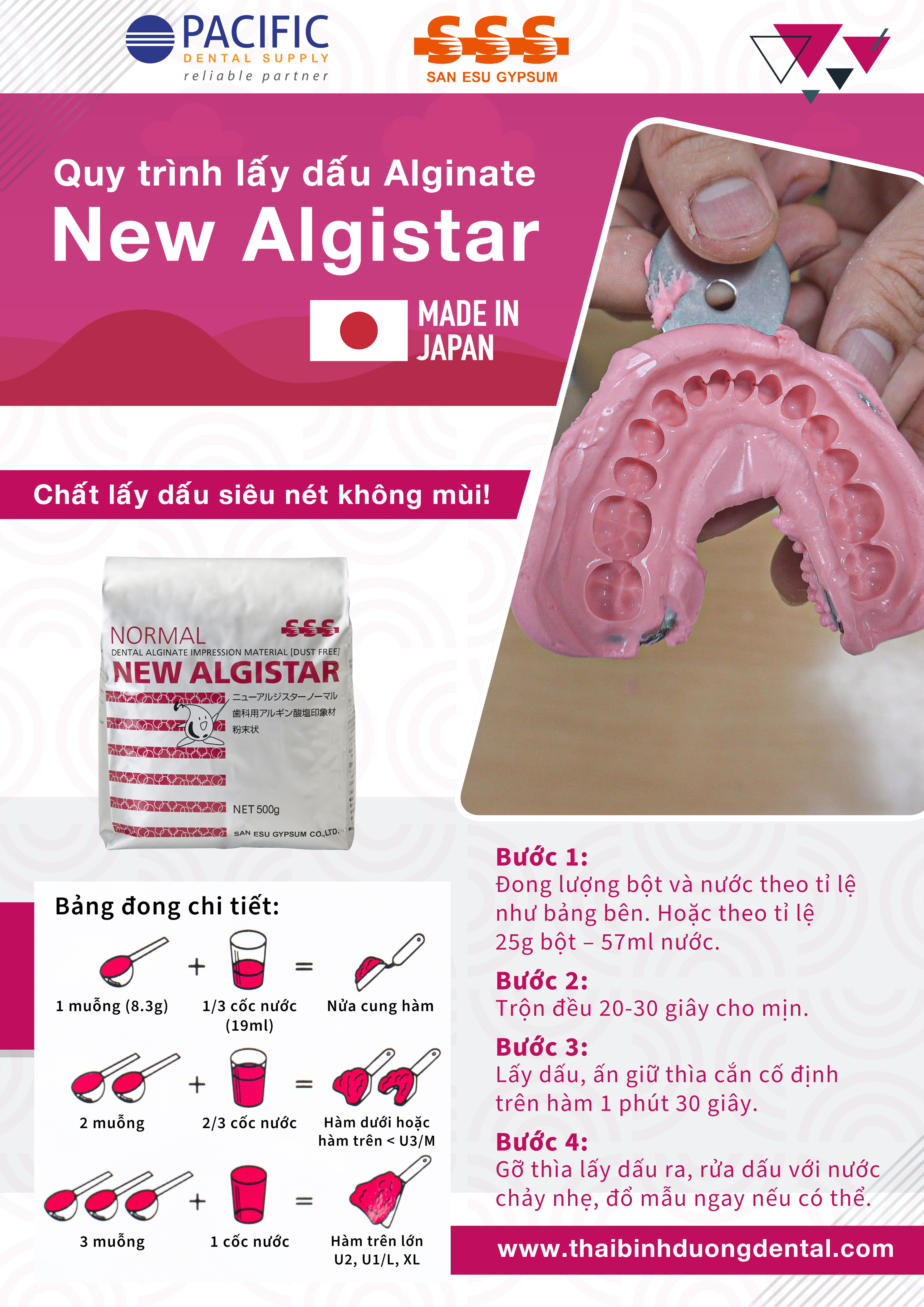 Sau khi đông cứng, độ sắc nét và chi tiết của New Algistar có thể thay thế silicone trong những ca phục hình đơn giản. Ngoài ra, nó còn tương thích với tất cả các loại thạch cao đổ mẫu trên thị trường, mang lại hiệu quả kinh tế cho phòng khám.