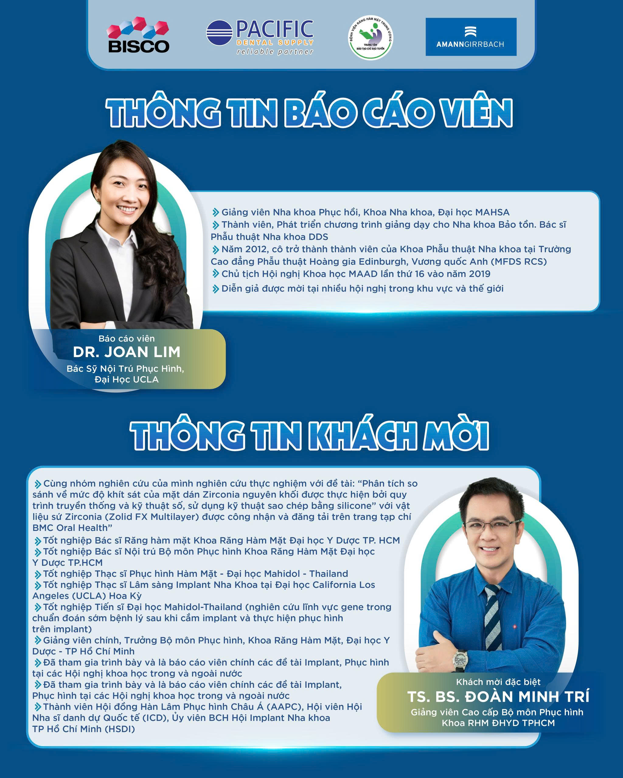 Đặc biệt, hội thảo còn vinh dự có sự tham gia của Khách mời đặc biệt: TS. BS. ĐOÀN MINH TRÍ - Giảng viên Cao cấp Bộ môn Phục hình, Khoa Răng Hàm Mặt, Đại học Y Dược TP.HCM.