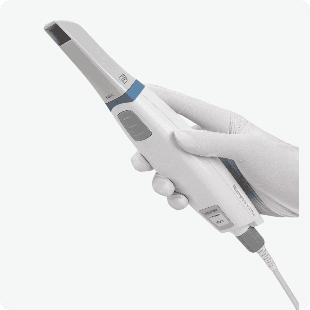 Máy scan trong miệng Runyes với công nghệ quay phim lại hình ảnh nhanh chóng và dễ dàng, nhờ đó có thể ghi được các dấu kỹ thuật số trong nha khoa một cách chính xác, đáng tin cậy với đầy đủ các dữ liệu, mang lại cho bệnh nhân những trải nghiệm điều trị dễ chịu và hiệu quả, máy scan giúp cho nha sĩ có thể dễ dàng chẩn đoán và trao đổi thông tin với bệnh nhân. Máy scan Runyes là một hệ thống máy scan mở, giúp người dùng tiếp cận được thiết bị với công nghệ mới nhất hiện nay trên thị trường. Máy có rất nhiều ứng dụng bao gồm lấy dấu kỹ thuật số, chỉnh nha kỹ thuật số, máng hướng dẫn kỹ thuật số trong phẫu thuật implant, v..v